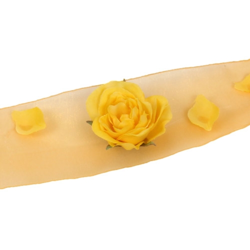 Tischdekorationen erhalten mit außergewöhnlichen Accessoires ihre besonderen Blickfänge. Mit dem Organza Tischband mit Rosen in Gelb können Sie Ihre Tischdeko bereichern. Wird die Tischmitte mit diesem Organza Tischband ausgestattet, ist das Ergebnis sehr eindrucksvoll. Eine tolle Kombination aus Organza, Tischband und Blumen.