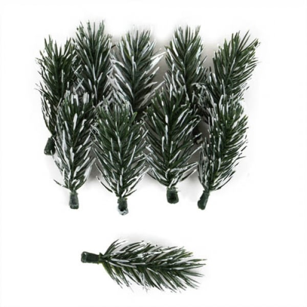 10 kleine Kunst Tannenspitzen mit Schnee, 70 mm
