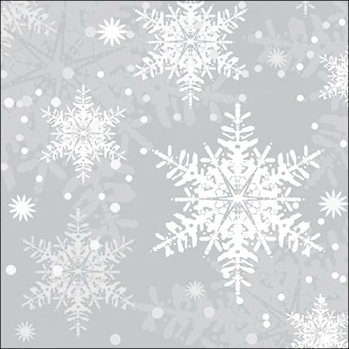 20er Pack Servietten Eiskristalle in Weiß/Silbergrau, 33 x 33 cm