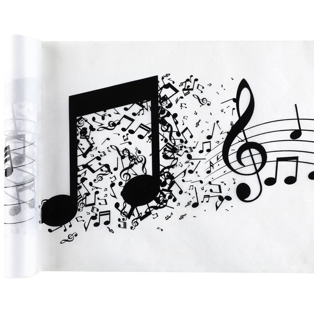 5 Meter Vlies Tischläufer Noten, Musik in Weiß/Schwarz, 30 cm