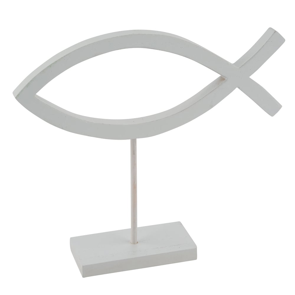 Christlicher Holz Fisch auf Sockel in Weiß, 23 cm