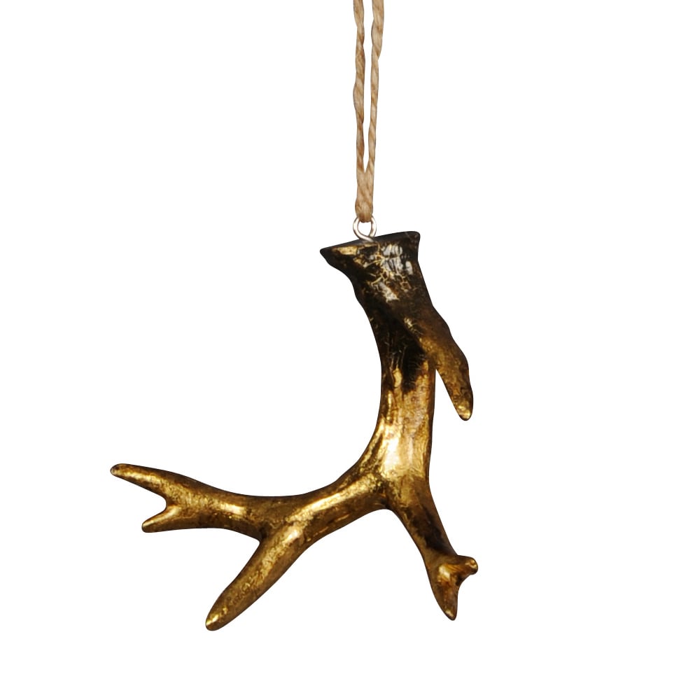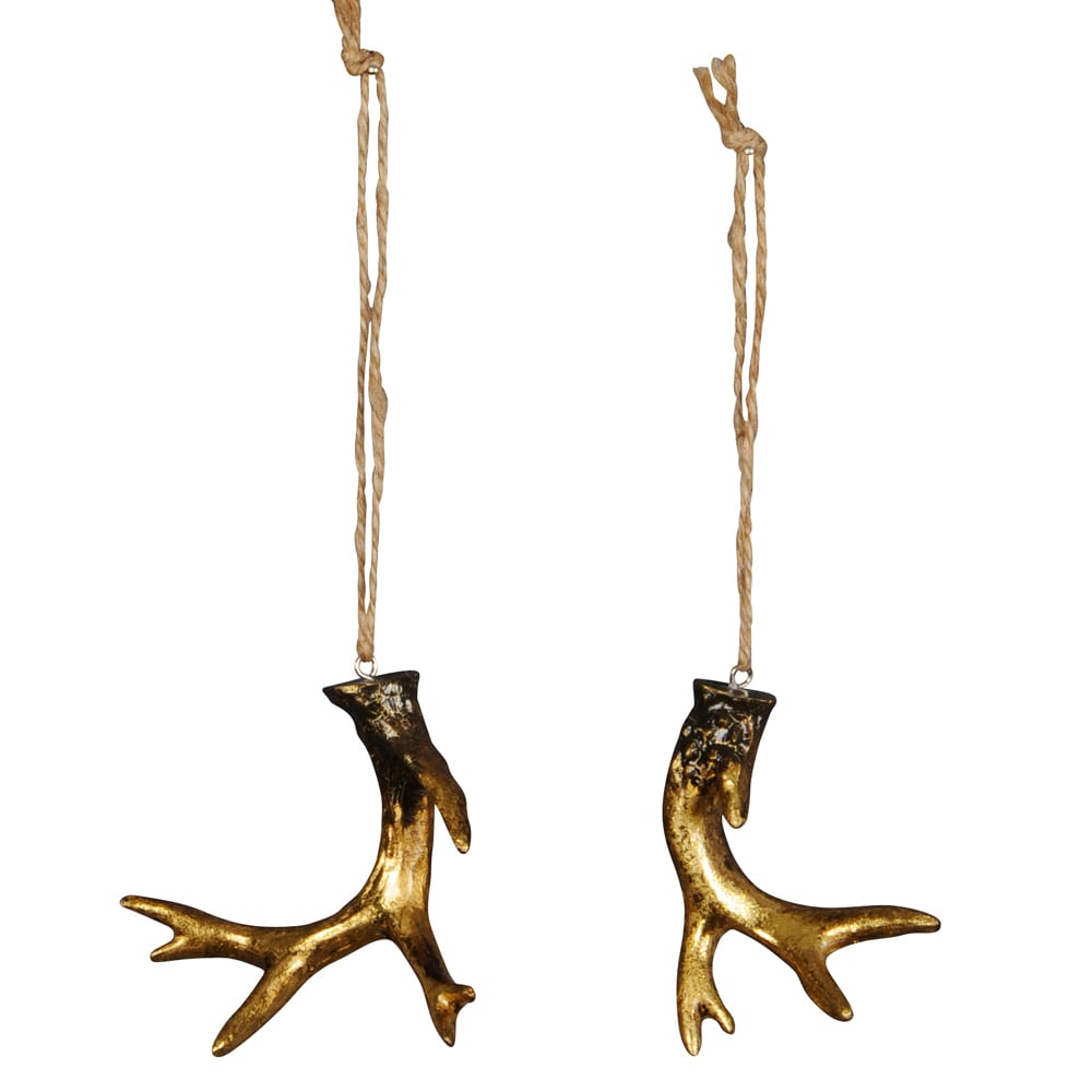 2er Set Deko Hirschgeweihe zum Aufhängen in Gold/Braun, 75 mm