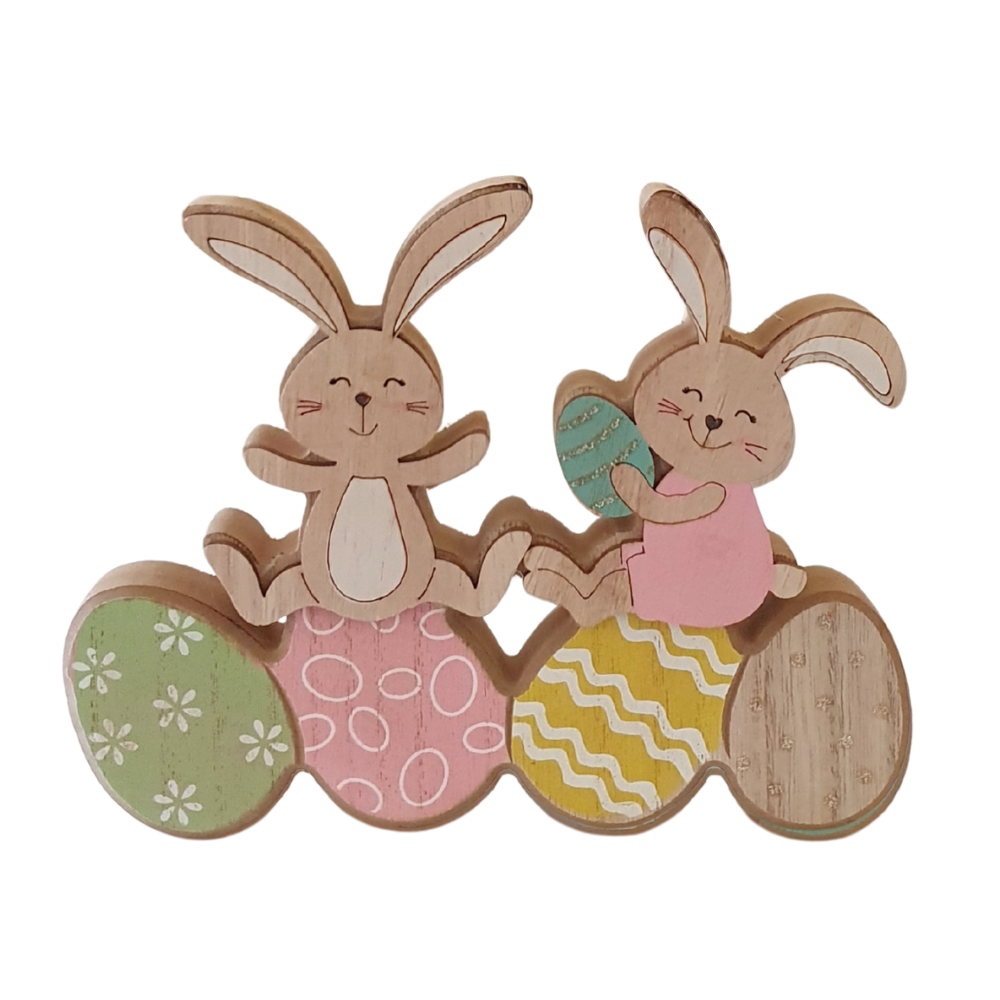 Holz Hasen auf Ostereiern, Rosa Mix, 17,5 cm
