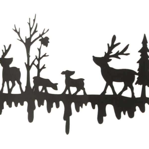 Deko Metall Leiste mit Hirschen & Rehen im Winterwald in Schwarz, 50 cm