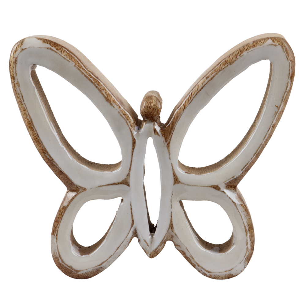 Dekofigur Schmetterling aus Mangoholz in Weiß/Braun, 14,5 cm