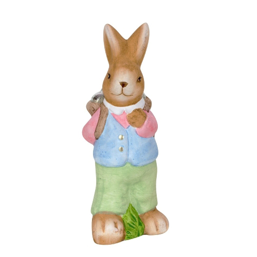 Keramik Osterhasen Junge mit Eierkörbchen, in Pastellfarben, 11,5 cm