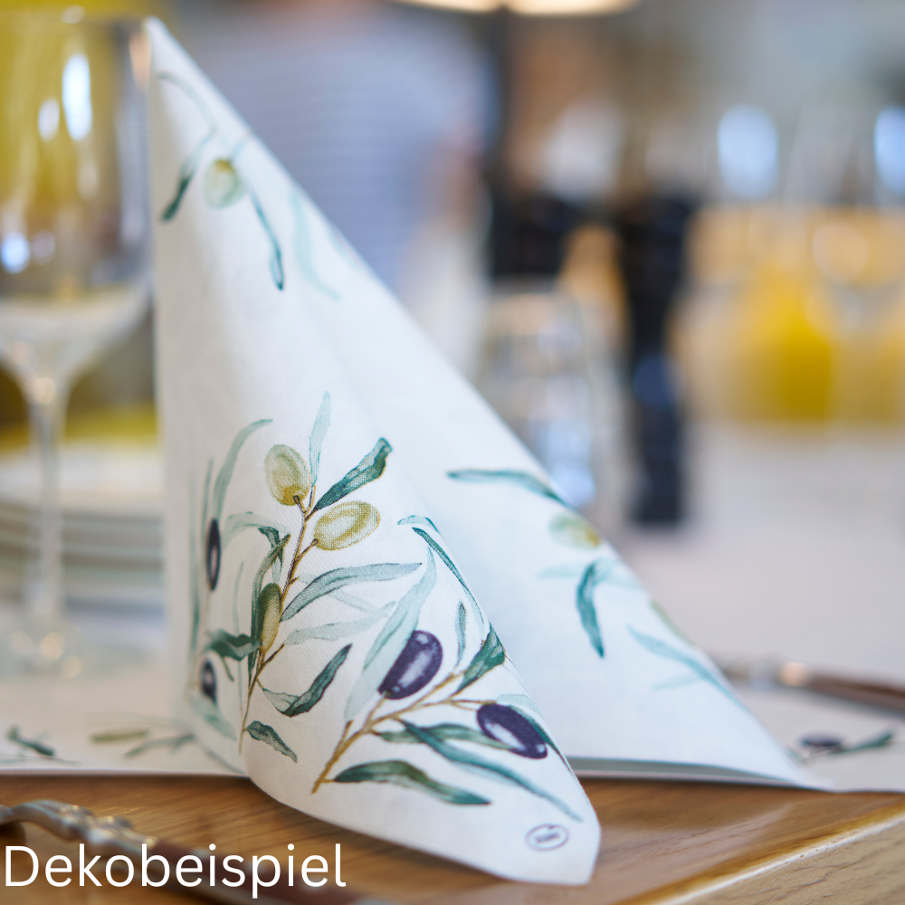 Tipp: Die Serie Olive Garden lässt sich perfekt mit den Duni Uni Farben Weiß, Schwarz und Ocean Teal kombinieren.