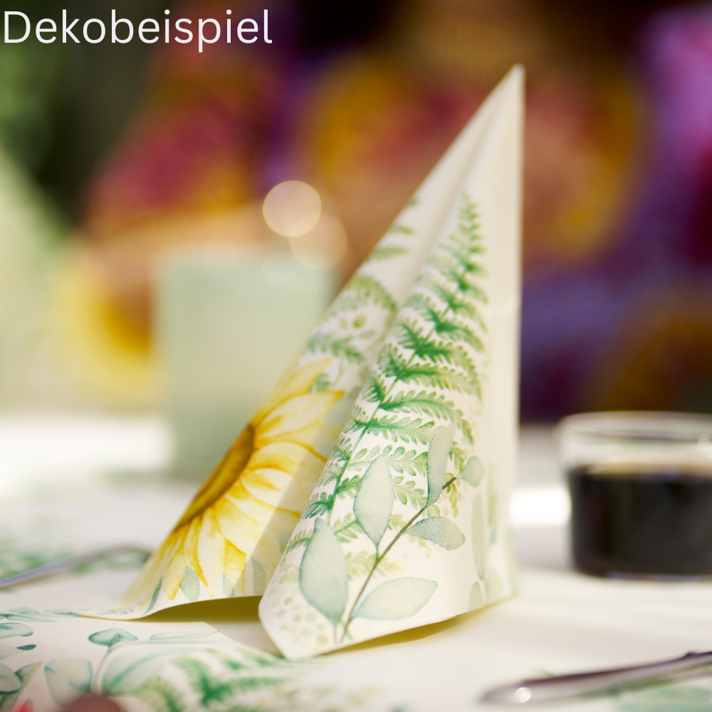 Tipp: Die Sommerserie Sunflower Dreams lässt sich perfekt mit den Duni Uni Farben Cream, Leaf Green und Gelb kombinieren.