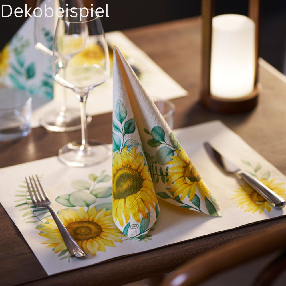 Tipp: Die Sommerserie Sunflower Dreams lässt sich perfekt mit den Duni Uni Farben Cream, Leaf Green und Gelb kombinieren.