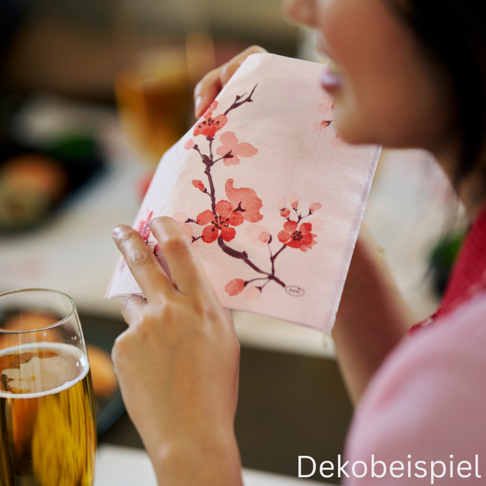 Tipp: Die Frühlingsserie Cherry Breeze Pink lässt sich perfekt mit Cherry Breeze Blue und den Duni Uni Farben Mellow Rose, Weiß und Mint Blue kombinieren.