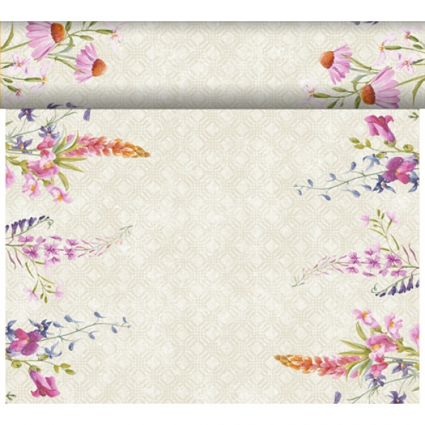 Der Duni Tête-à-Tête Tischläufer Floret ist beinahe unsichtbar alle 120 cm perforiert, somit kann er auch quer über den Tisch als Tischläufer von Gast zu Gast verwendet werden.