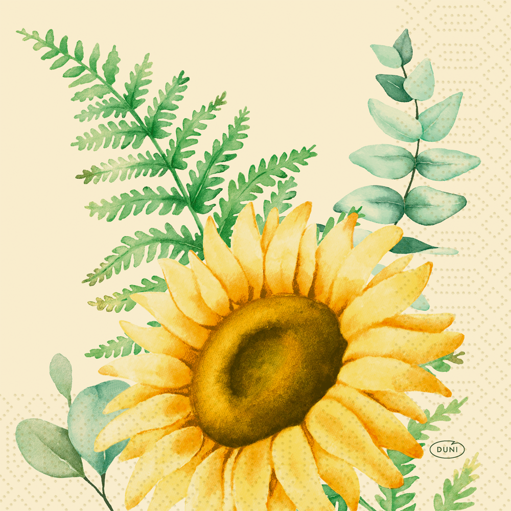 Tipp: Die Sommerserie Sunflower Dreams lässt sich perfekt mit den Duni Uni Farben Cream, Leaf Green und Gelb kombinieren.