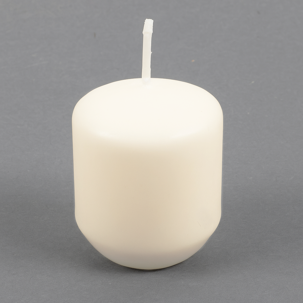 Kerze mit abgerundetem Boden und idealer Passform für Votivgläser. Kerze verläuft komplett, brennt sauber und rückstandsfrei ab - ideal für den schnellen Kerzenwechsel in der Gastronomie. Dank Dochthalter fällt der Docht während des Brennens nicht um.