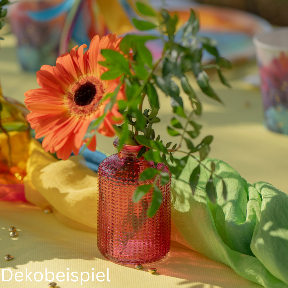 Kleines Glas Flaschen Väschen, gemustert, in Pink, 10 cm