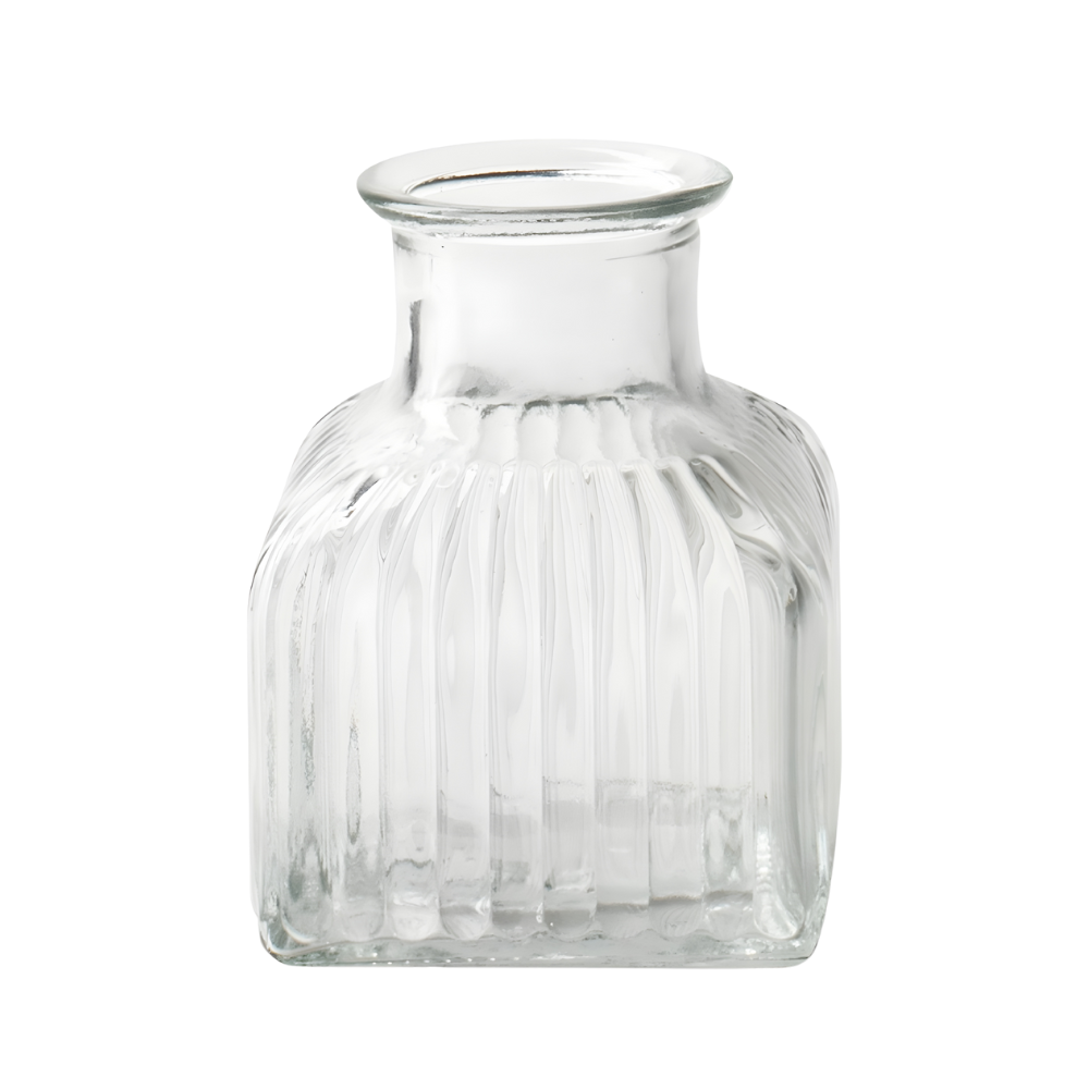 Kleines Glas Väschen eckig mit Streifen, klar, 90 mm