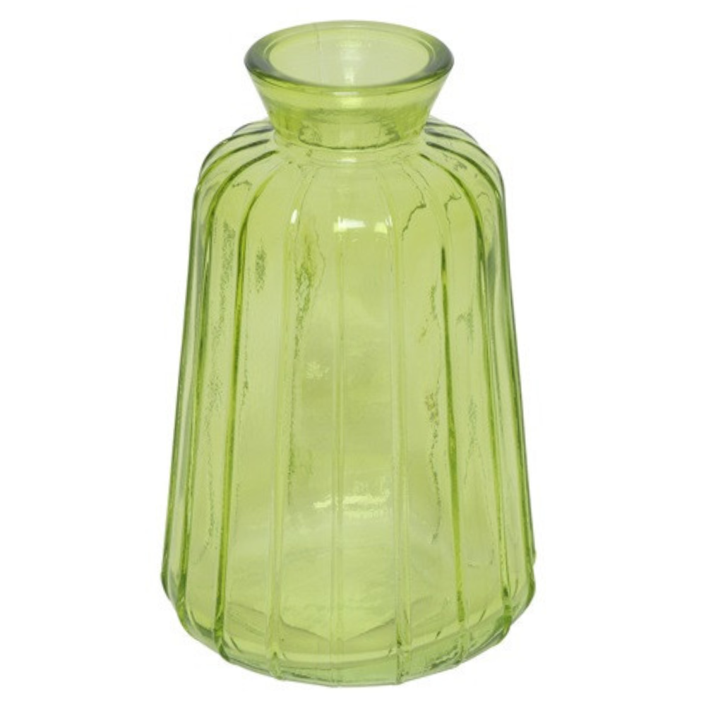 Glas Flaschen Väschen, konisch mit Streifen in Hellgrün, 11 cm