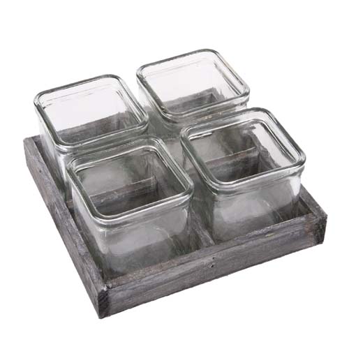 Tafeldeko Tipp: Dekorieren Sie dieses Tablett mit den vier Gläsern doch einfach mit Granulat, kleinen Stumpenkerzen oder Teelichtern in der Adventszeit - Voilà: Adventskranz mal anders!