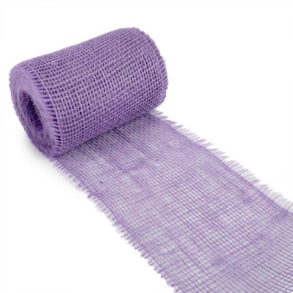 10 Meter Jute Tischband, schmal, grobmaschig in Flieder, 15 cm