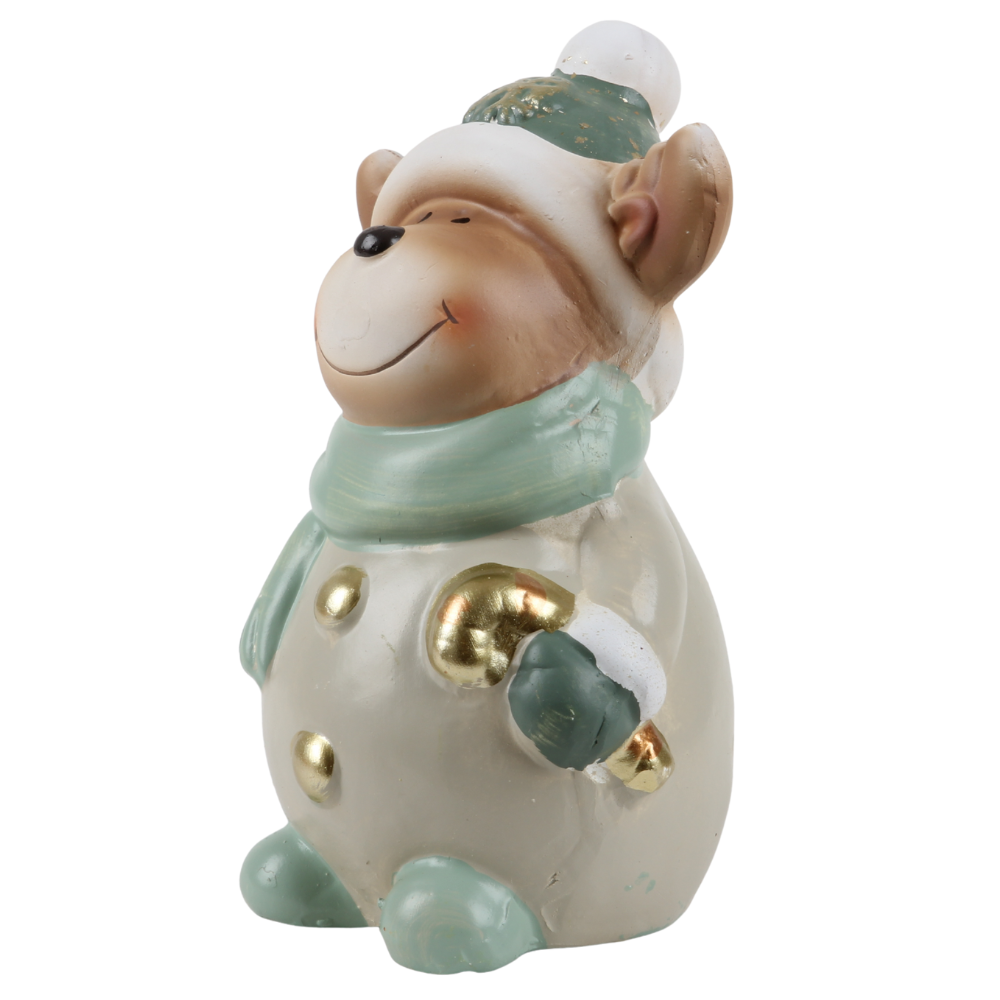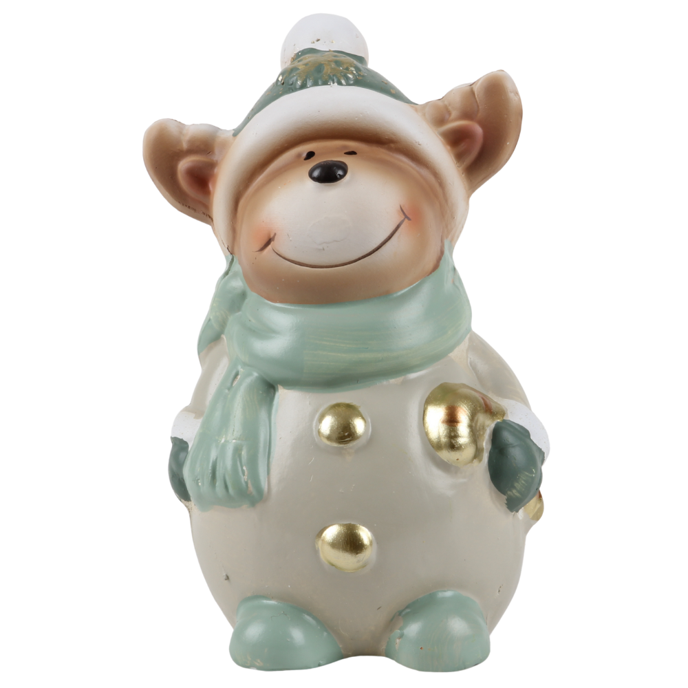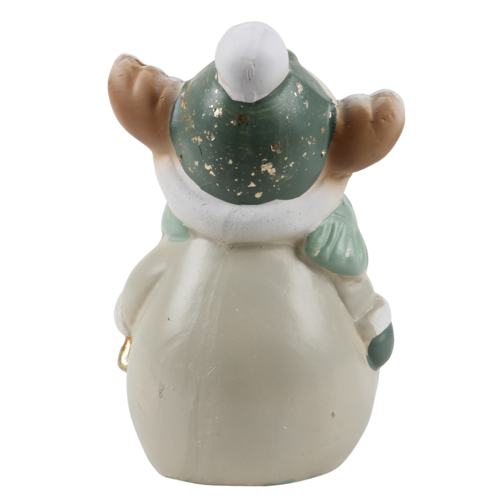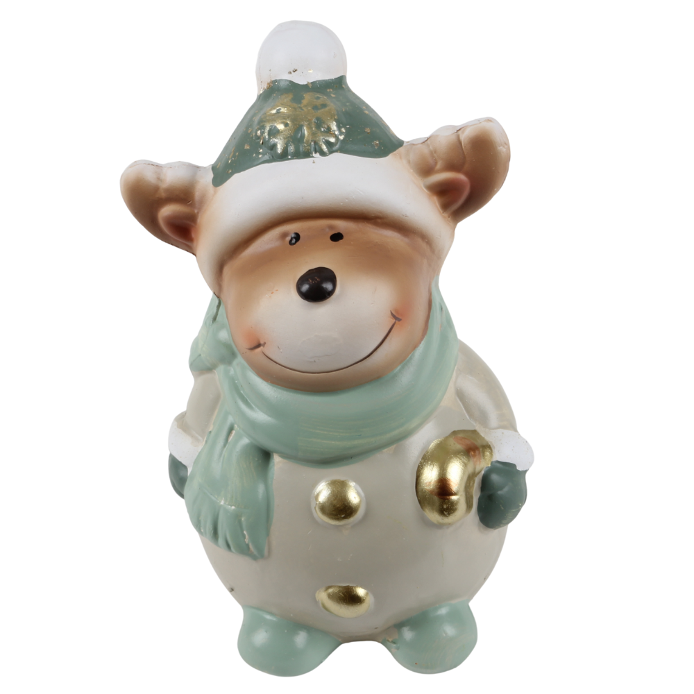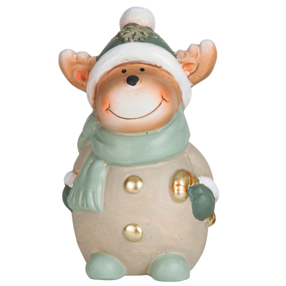 Keramik Rentier mit Schal in Salbei/Taupe, 15 cm