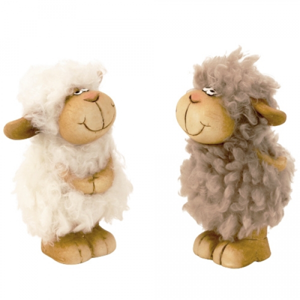 Keramik Schaf mit Wuschelfell in Weiß, 10 cm
