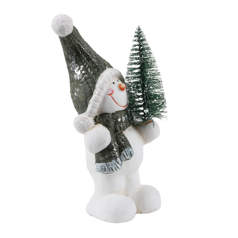 Keramik Schneemann mit Tannenbaum in linker Hand, 16,5 cm