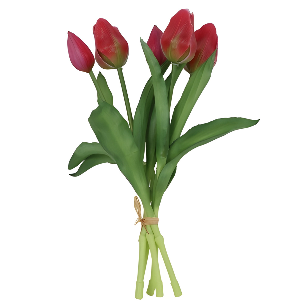 5er Bund Kunstblumen Real Touch, Tulpen in Rot-Pink, 30 cm