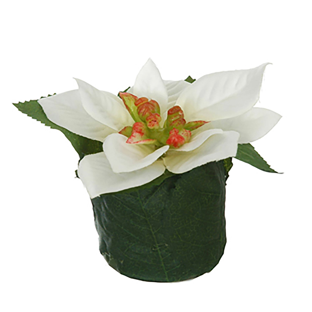 Kunstblume Weihnachtsstern im Blättertöpfchen in Weiß, 80 mm