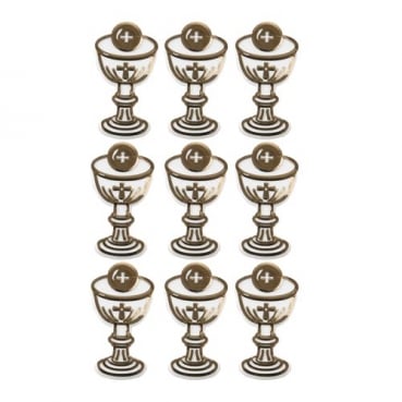 9 Streudeko Miniatur Kommunion Kelche in Weiß/Gold, 28 mm