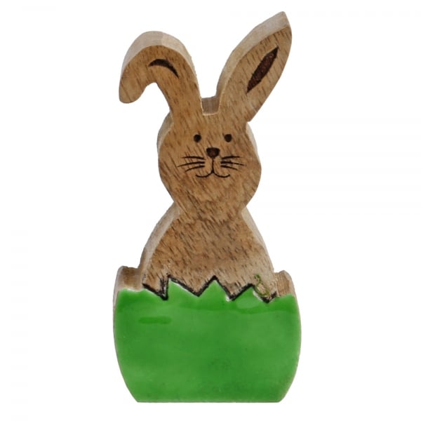 Mangoholz Osterhase, Eierschalen-Optik in Grün, 10 cm