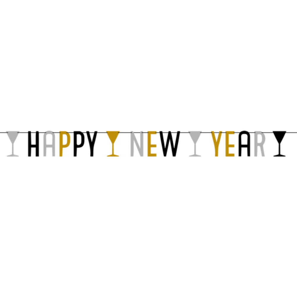 Partykette Silvester, Happy New Year mit Sektgläsern