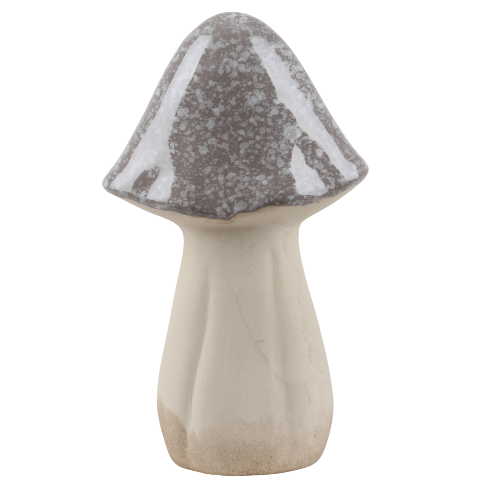 Großer Porzellan Pilz mit Hut in Grau glasiert, 20 cm