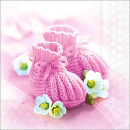 20er Pack Servietten Taufe, Baby Strickschühchen in Rosa, 33 x 33 cm