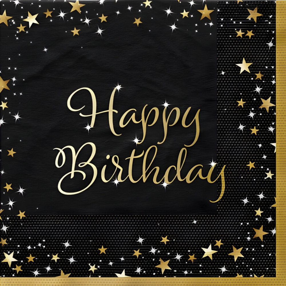 16er Pack Servietten Funkelnder Schriftzug Happy Birthday, Geburtstag, 33 x 33 cm