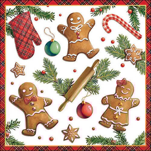 20er Pack Servietten Weihnachten, Lebkuchenmann, 33 x 33 cm