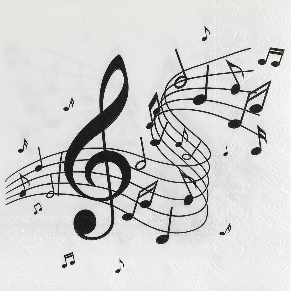 20er Pack Servietten Noten, Musik in Schwarz/Weiß, 33 x 33 cm