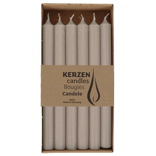 12 Stabkerzen, Rustic in Taupe, 250 x 22 mm