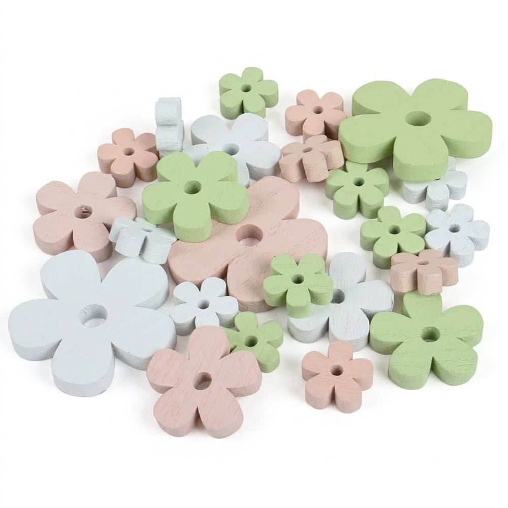24 Holz Blumen in Weiß/Rosa/Hellgrün, 25 - 60 mm