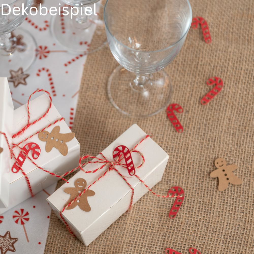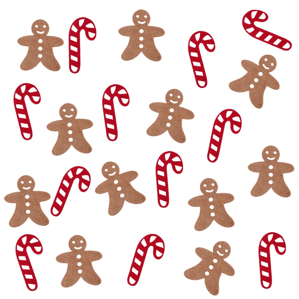 50 Papier Streuteile Weihnachten, Zuckerstange & Lebkuchenmann in Rot/Braun