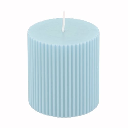 Stumpenkerze mit Rillen in Hellblau, 75 x 70 mm, 26 h Brenndauer