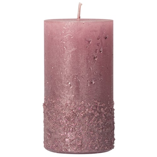 Stumpenkerze Rustic, Calla, Weihnachten in Altrosa mit Glitzer, 110 x 70 mm