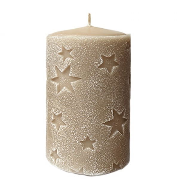 Große Stumpenkerze Mila, Sterne, Weihnachten in Taupe, 130 x 75 mm