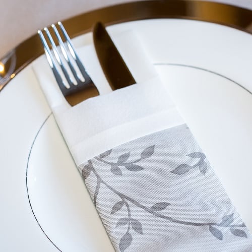 Unsere vorgefaltete Serviettentasche mit edlem Rankenmotiv verwandelt sich mit einem einzigen Handgriff in eine hochwertige Premium Serviette, 40 x 32 cm. Das ist innovativ und zeitsparend zugleich - schnell und nebenbei mit Besteck bestücken und einfach an den Plätzen der Gäste drapieren. Gleichzeitig ist sie durch das weiche Airlaid Material besonders mundfreundlich und angenehm auf der Haut.