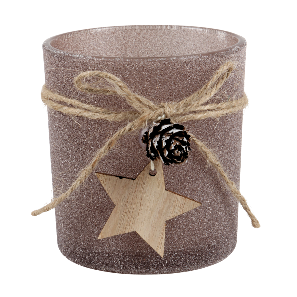 Teelichtglas Weihnachten, Frostoptik, mit Stern, in Braun, 80 mm