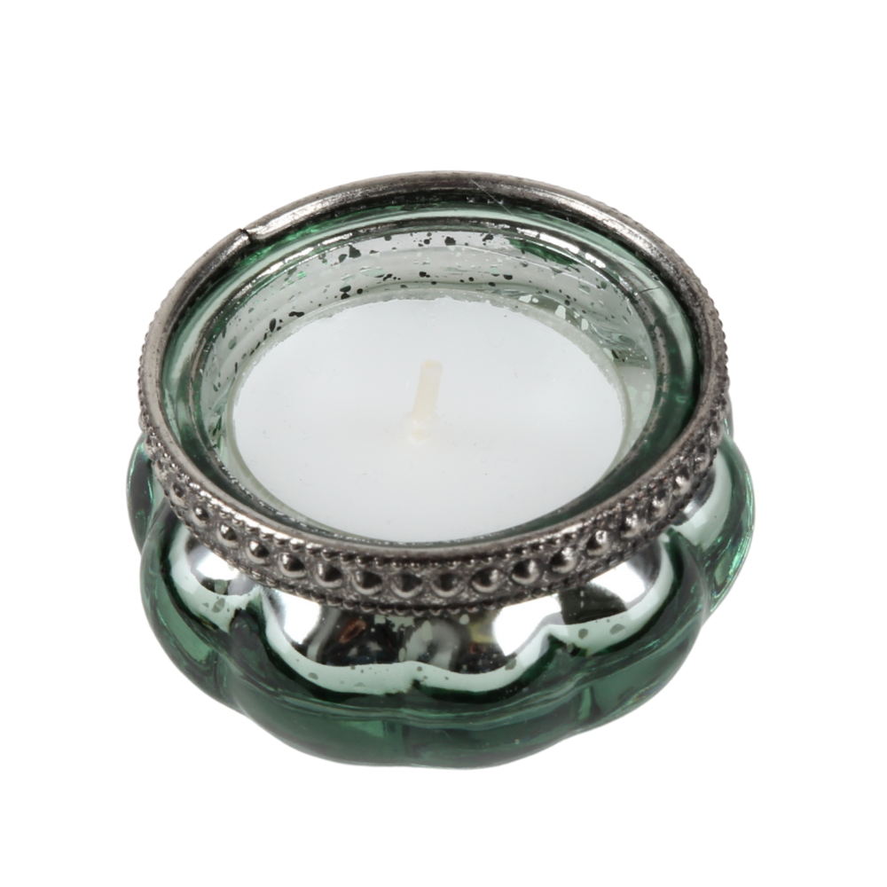 Teelichtglas Vintage mit Metallrand in Grün/Silber verspiegelt, 60 mm