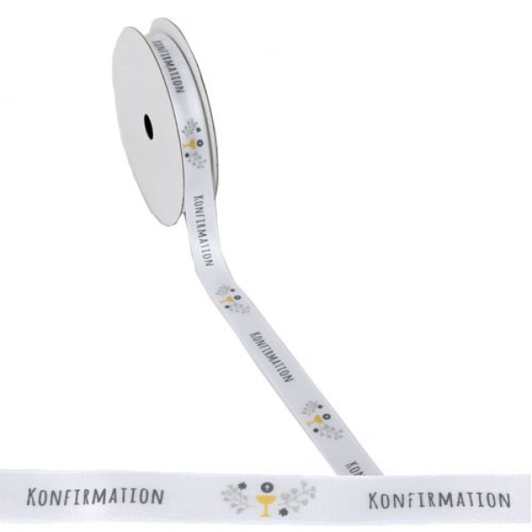 20 Meter Tischband, Schleifenband -Konfirmation- in Weiß/Grau, 15 mm