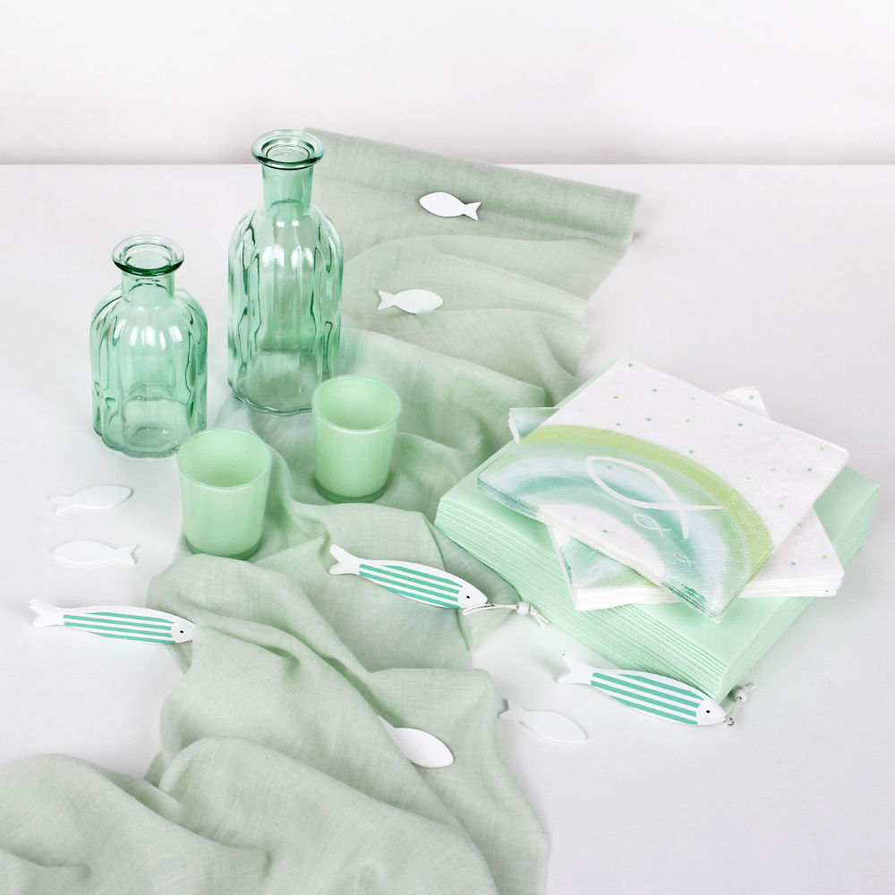 Unser praktisches Tischdeko-Paket für Kommunion, Konfirmation & Taufe "Fische in Mintgrün"