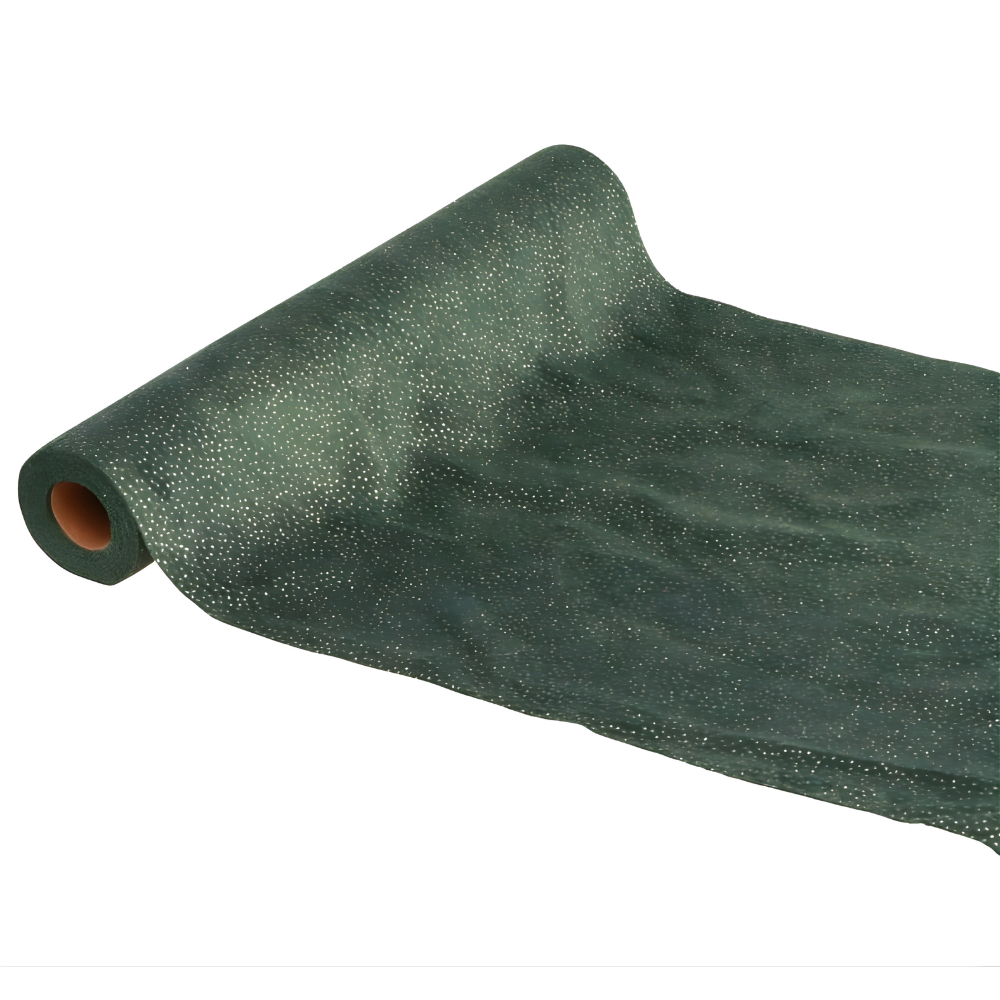 3 Meter Velours Tischläufer in Dunkelgrün mit Glimmerakzenten, 28 cm