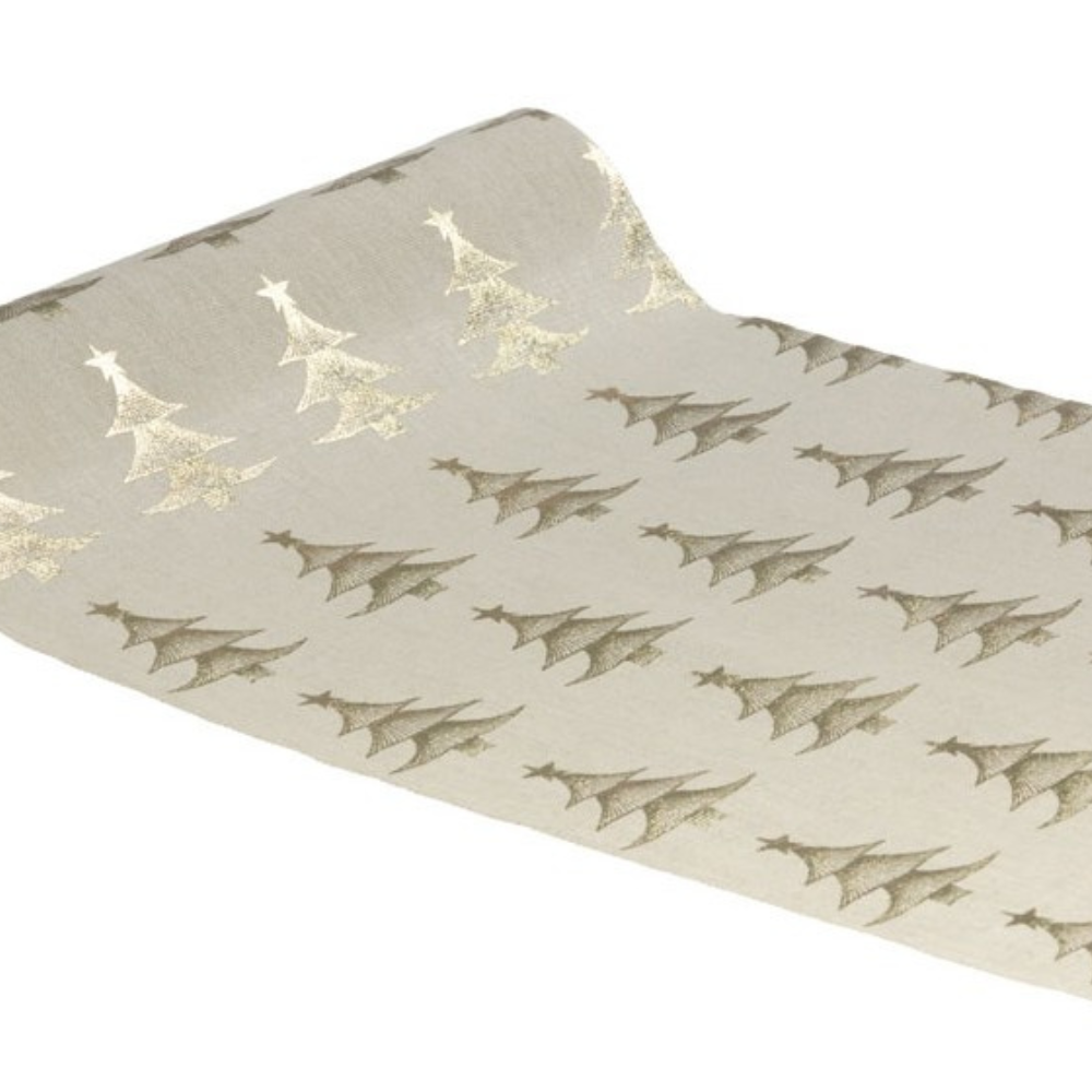 3 Meter Leinen-Optik Tischläufer Weihnachten, Tannenbäume in Champagner, 28 cm