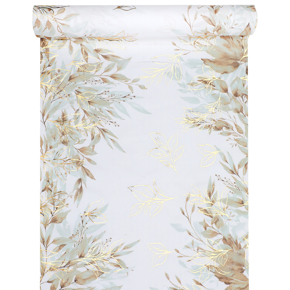 3 Meter Stoff Tischläufer Blätterdesign in Taupe/Gold, 28 cm