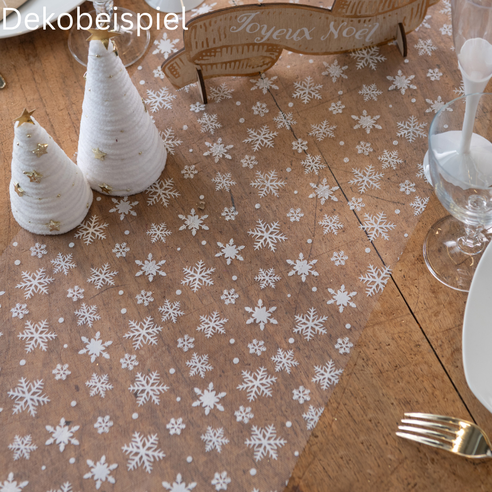 5 Meter Tischläufer Tüll, Eiskristalle in Weiß, 27 cm